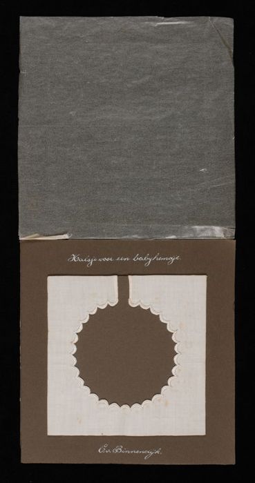 Naaiproef, "Halsje voor een babyhemdje" van wit kato...