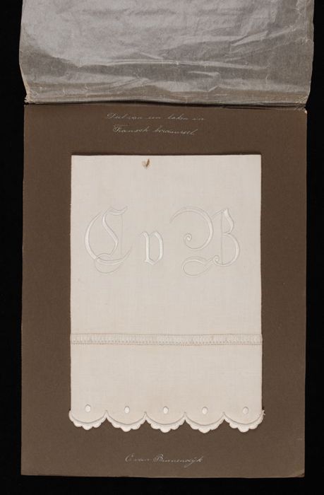 Naaiproef, applicatie van wit batist op wit tule, "C...