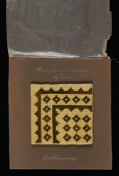 Borduurproef, hoekstuk van een kussenblad met tapiss...