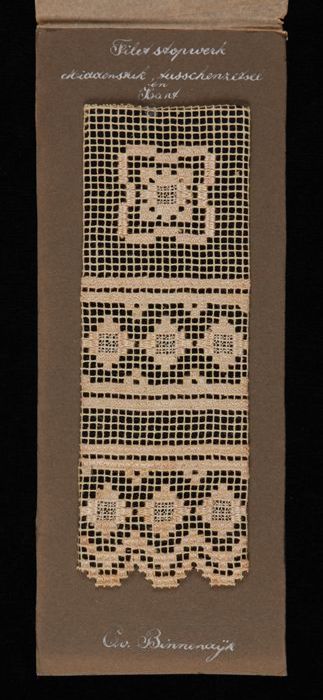 Proefstuk met filetdoorstopwerk in crèmekleurig kato...