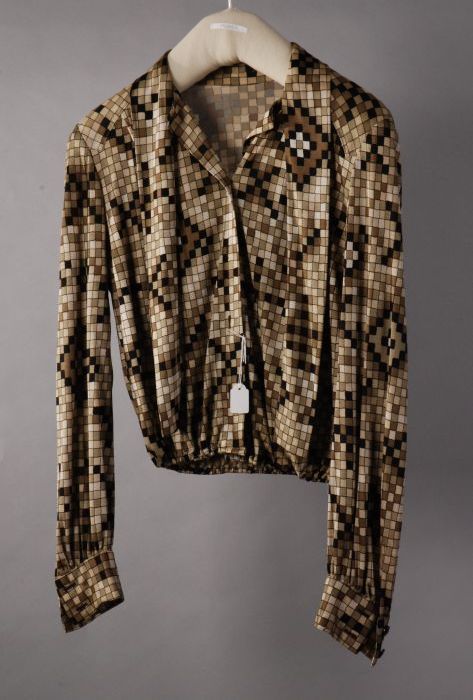 Japonlijf, bruin changeant zijde, V-vormige cape met...