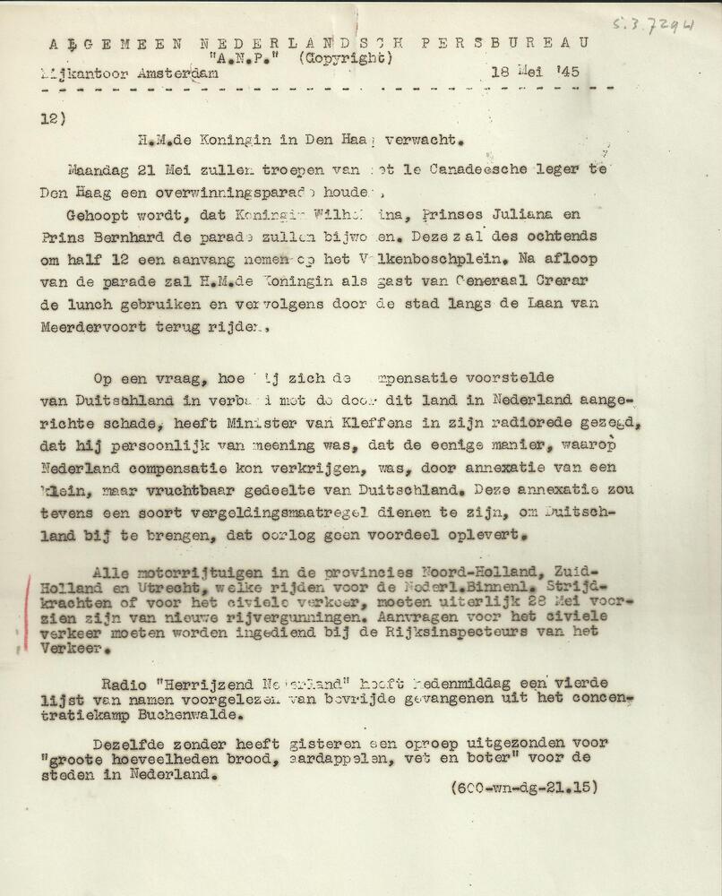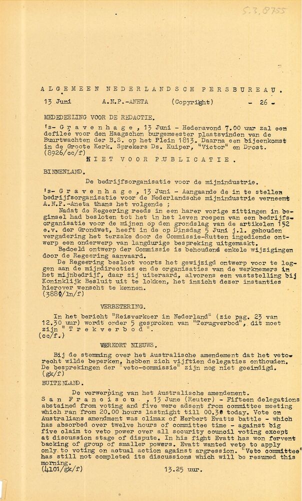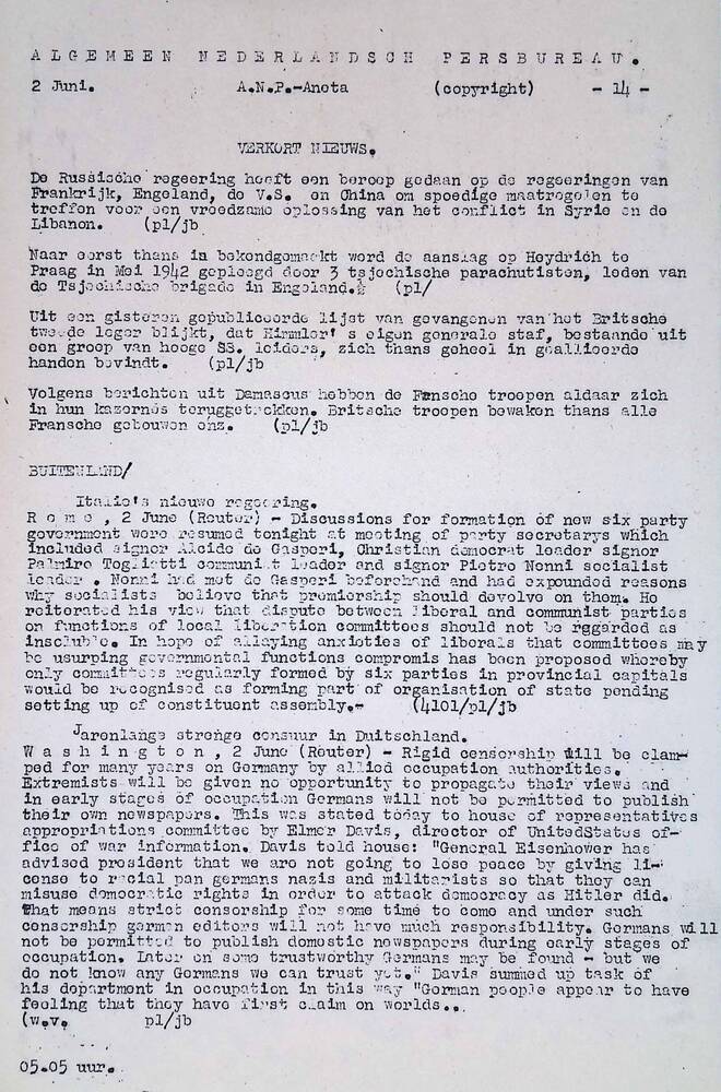 Algemeen Nederlandsch Persbureau, mededelingen, 2 ju...