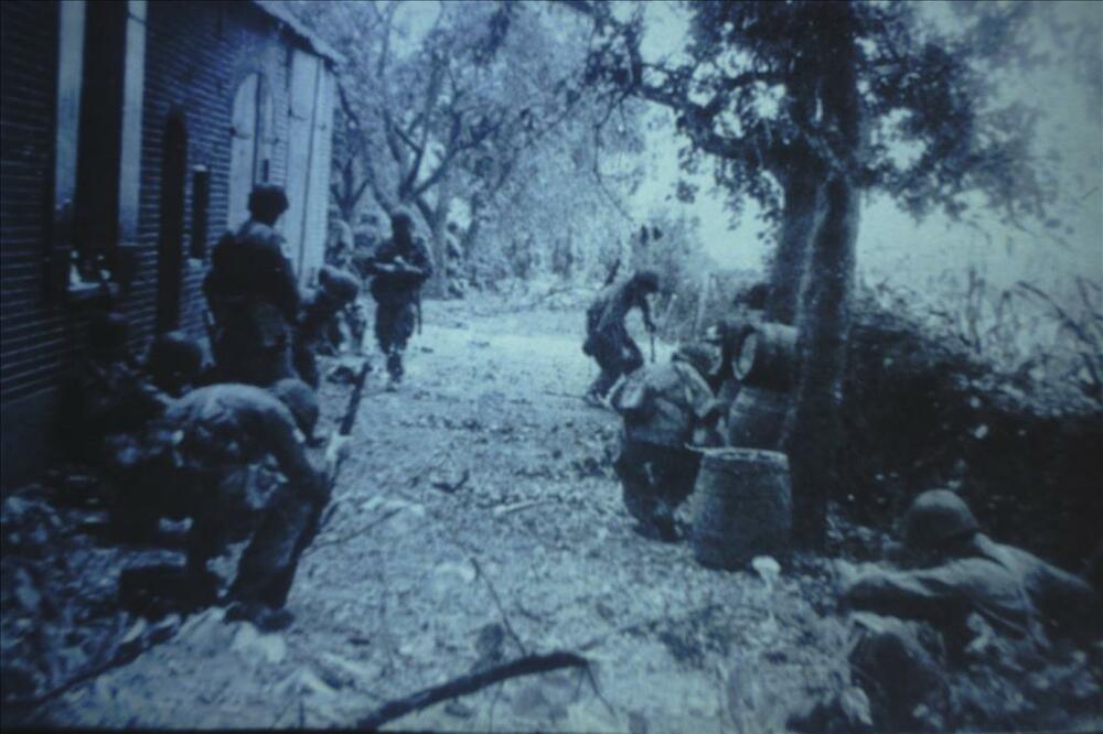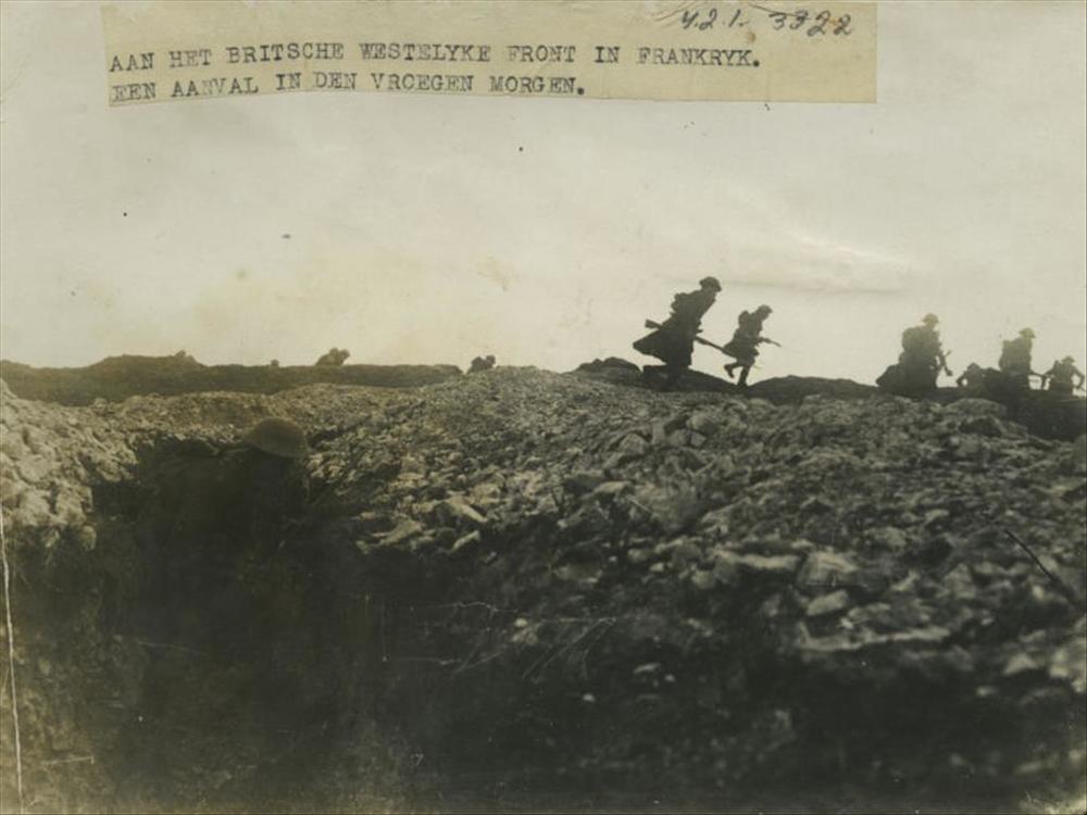 WO I; Britse troepen in aanval richting niemandsland