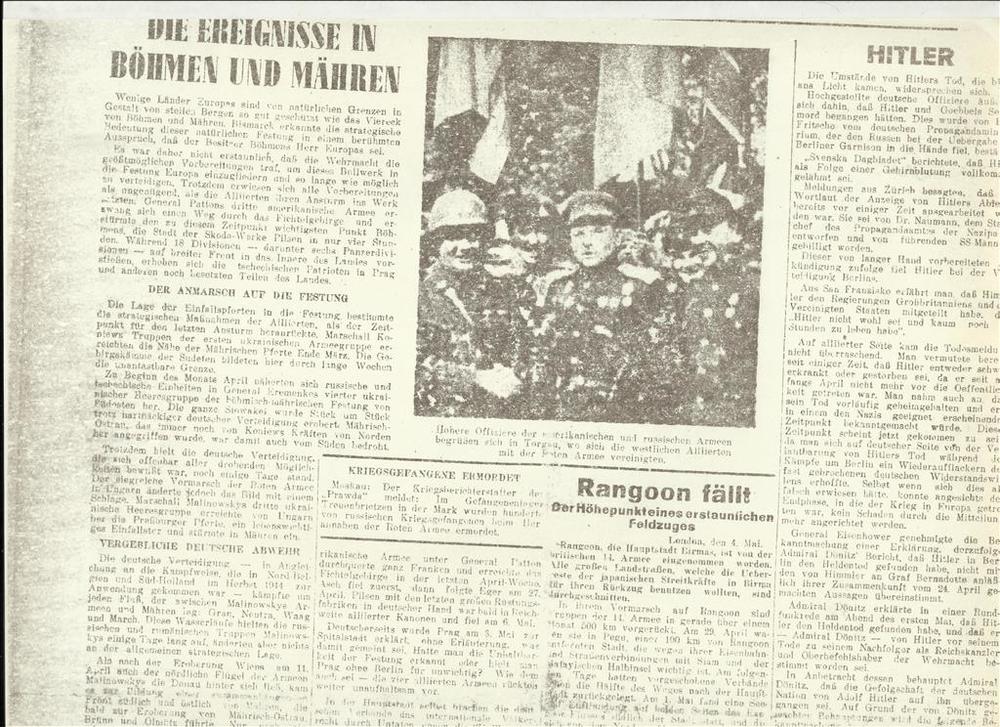 kopie knipsel Böhmen und Mähren, Hitlers Tod