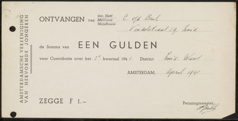 Kwitantie A.M.V.J. Amsterdam
