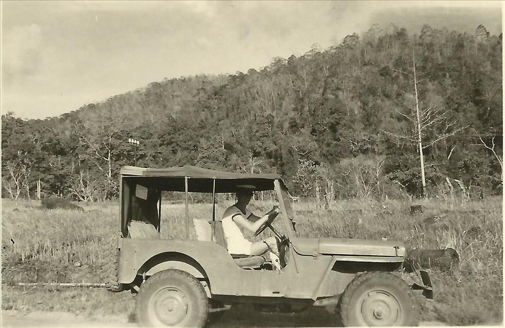 Nieuw-Guinea; marineman in jeep