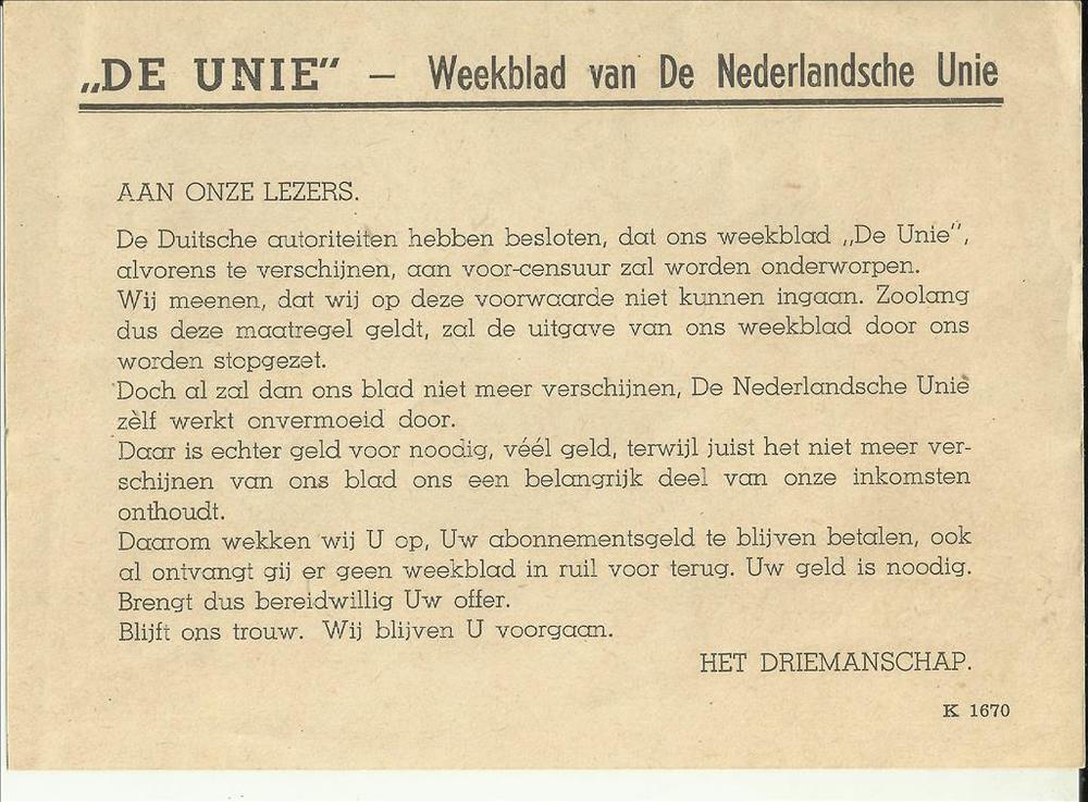 De Unie - Weekblad van De Nederlandsche Unie