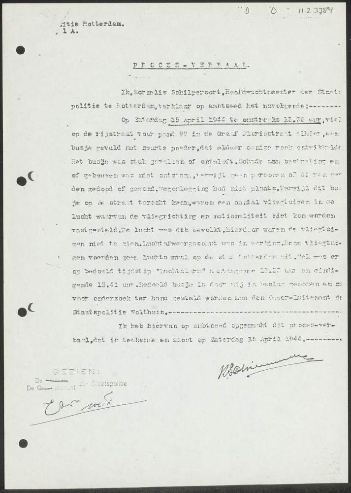 Proces-Verbaal politie Rotterdam 15 april 1944.