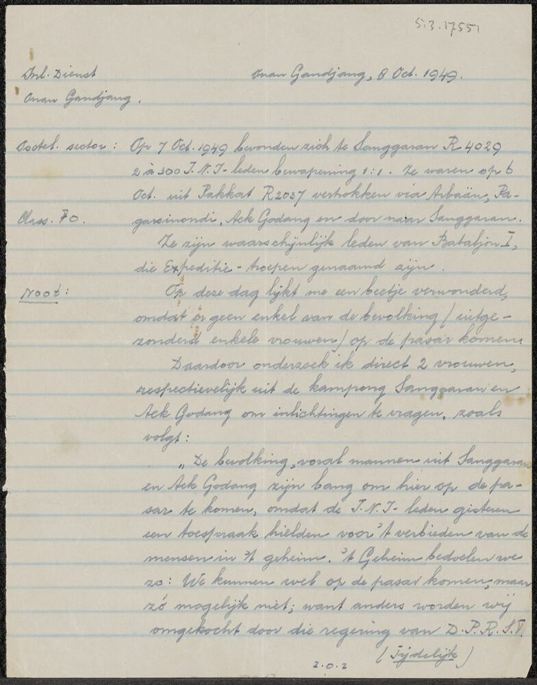 Handgeschreven brief over de situatie van T.N.I., d....