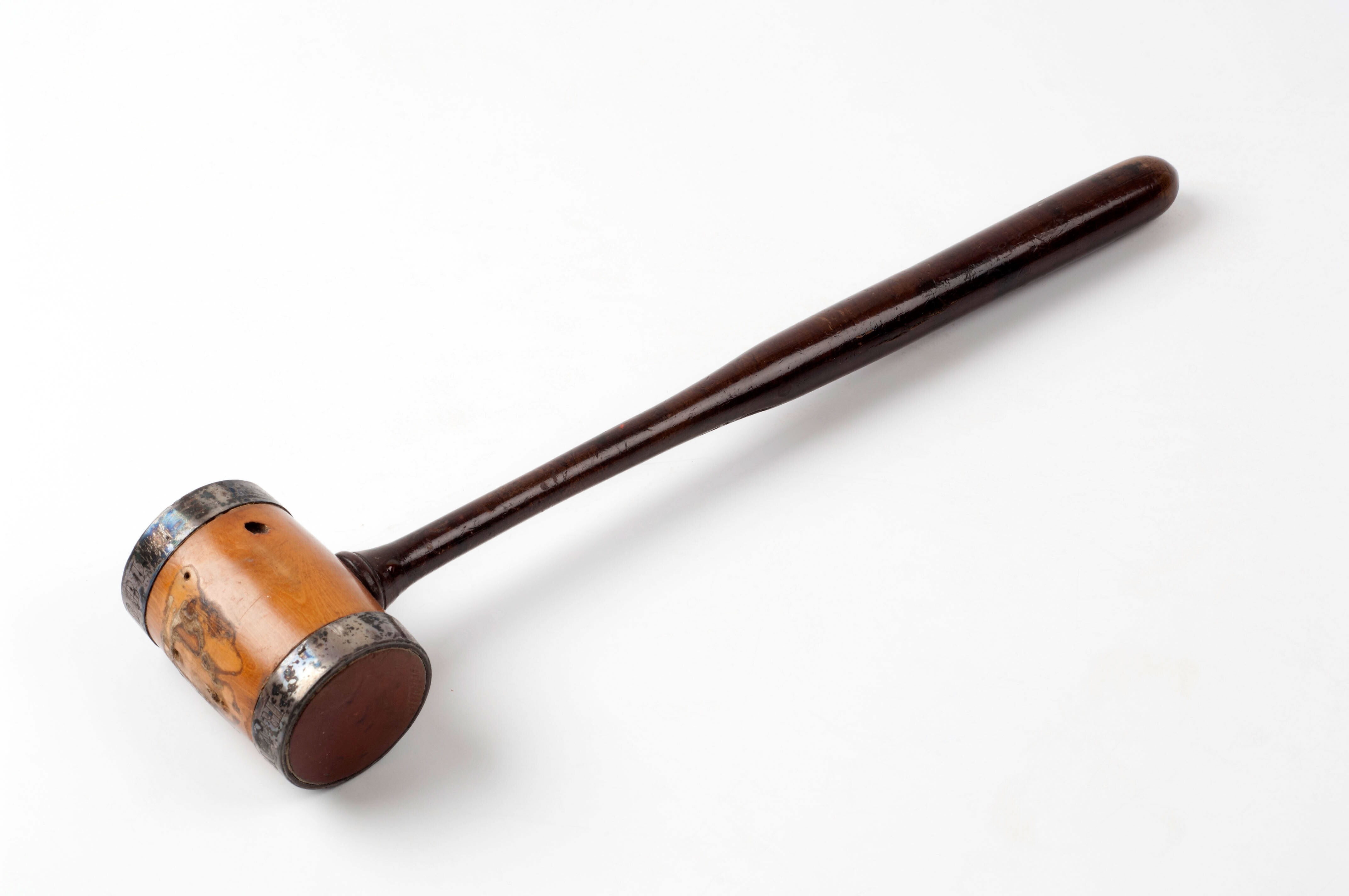 Houten voorzittershamer van de voorm. Raad van Ned. ...