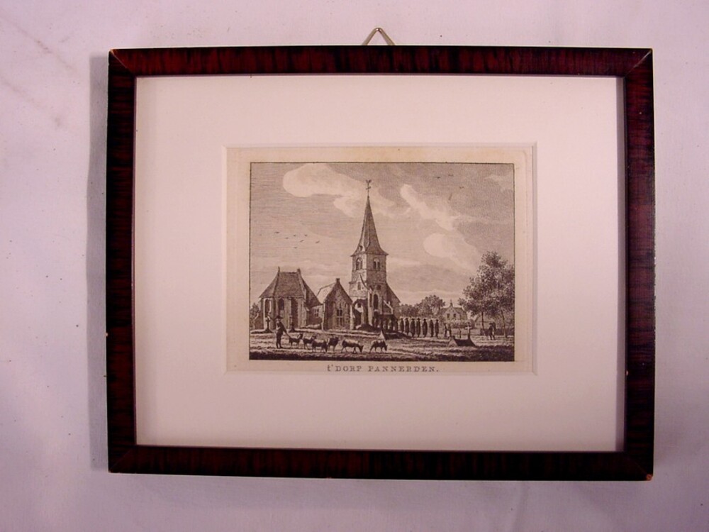 Gravure op papier met dorpsgezicht van Pannerden op ...