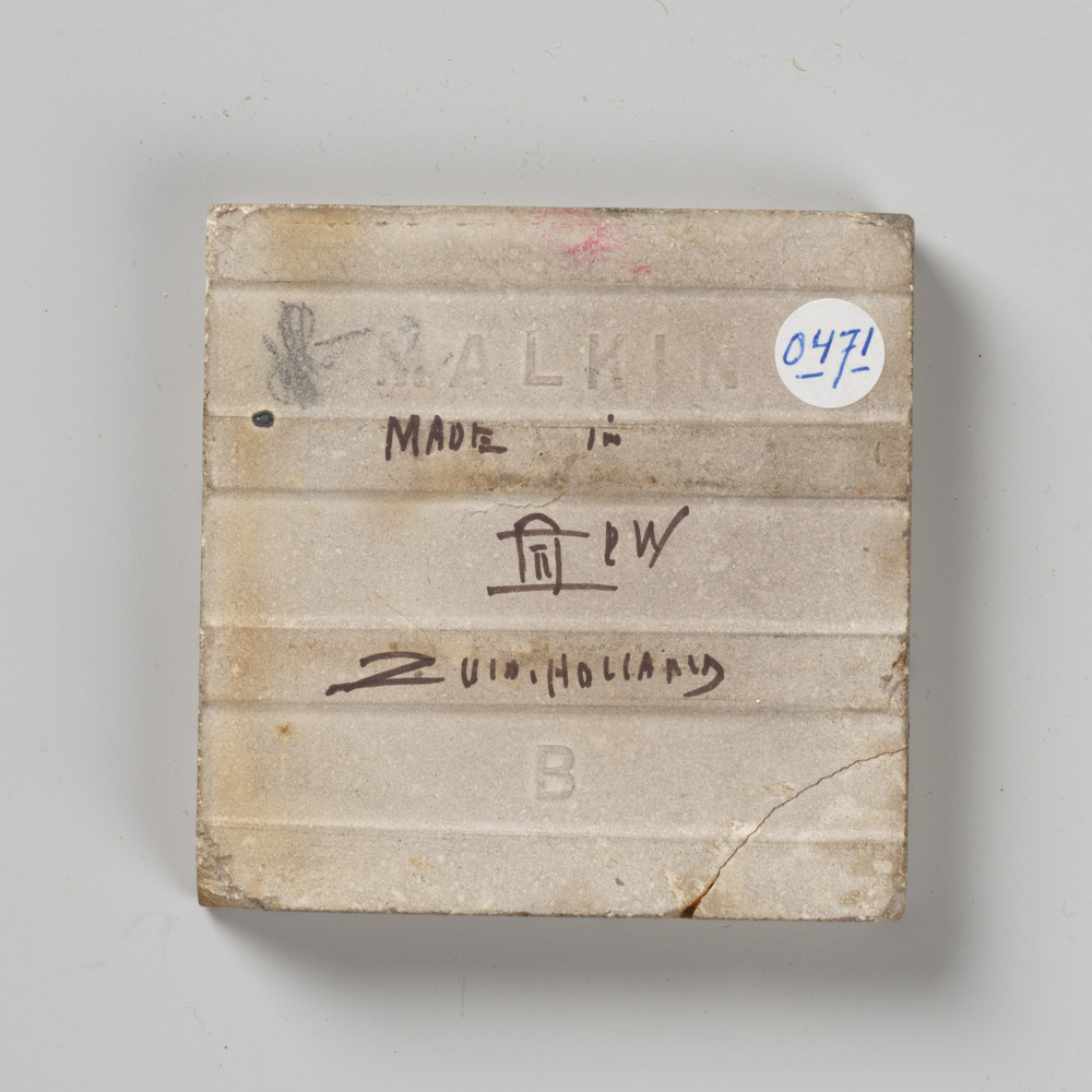 tegel van aardewerk in onderglazuur, voorstellende: ...