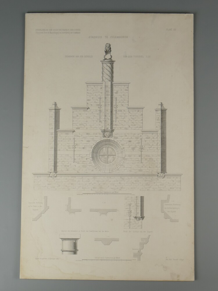 Aquarel, voorstellende de zijgevel van het stadhuis ...