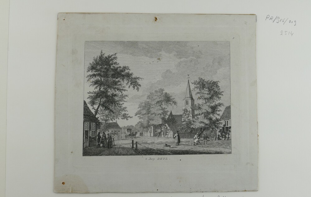 gravure voorstellende 't Dorp Deijl in de 18e eeuw