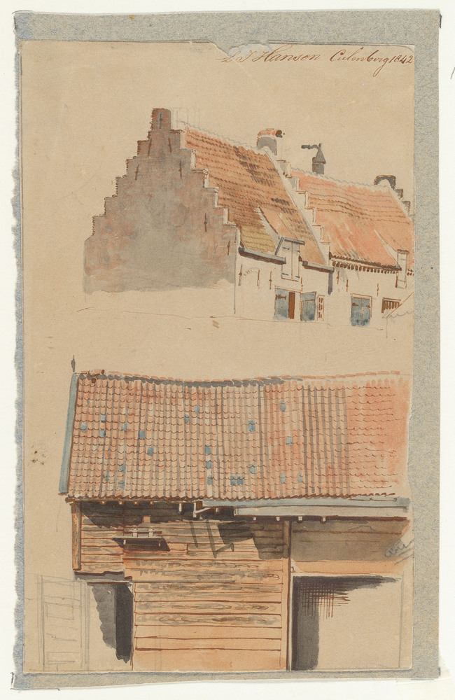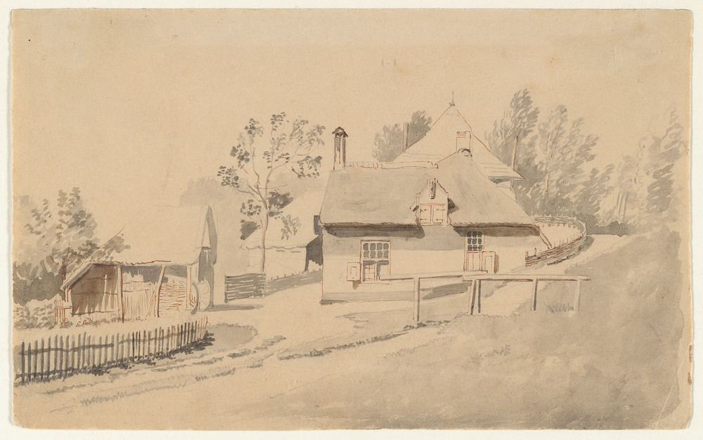 Aqaurel, voorstellende een dijkwoning of boerderij, ...