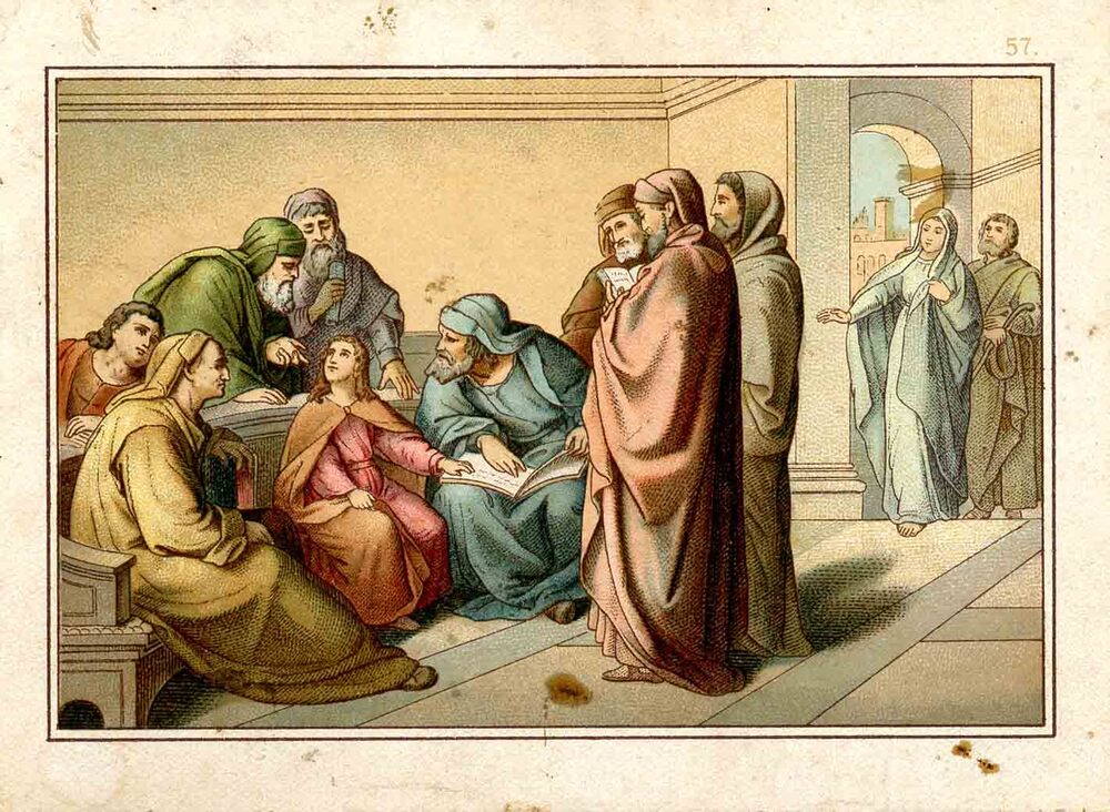 prent voorstellende de twaalfjarge Jezus in de tempel