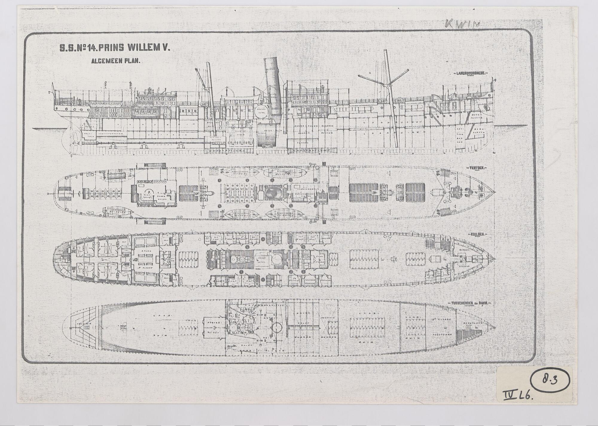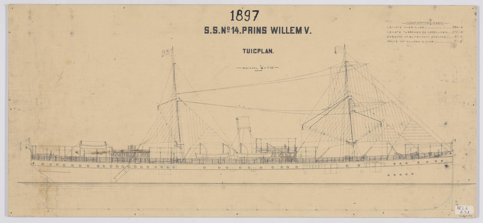 Tuigplan voor het passagiersschip ss. Prins Willem V...