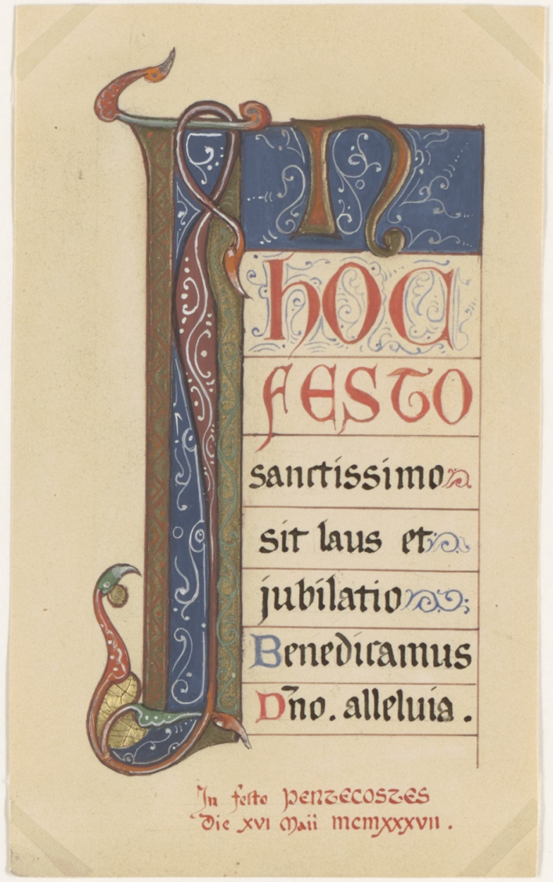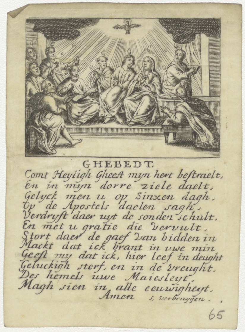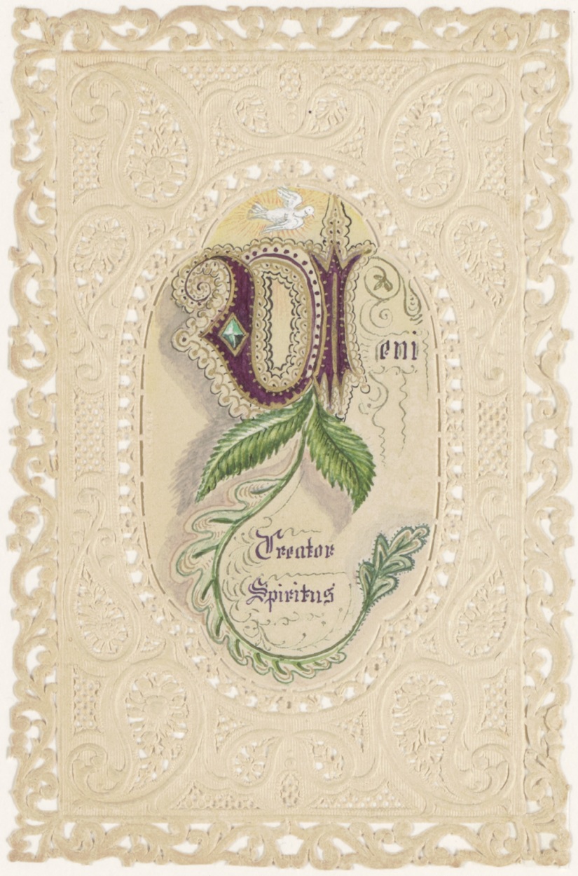 Veni creator spiritus, met groene tak, erboven H. Geest