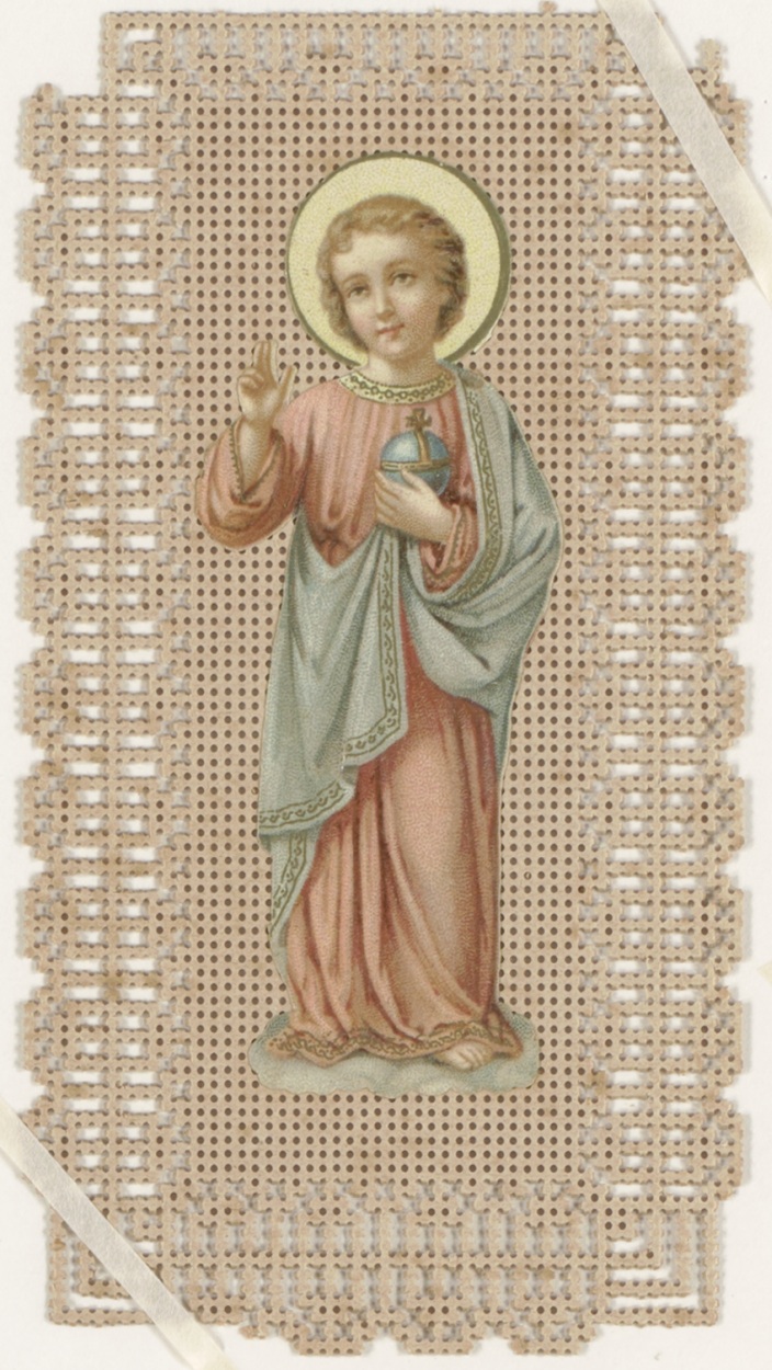 Christuskind als Salvator Mundi, op stramienkarton