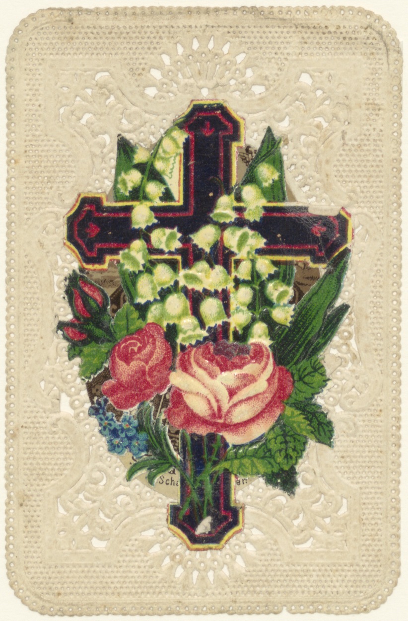 Kruis met bloemen, waarachter Maria van Kevelaer(?),...