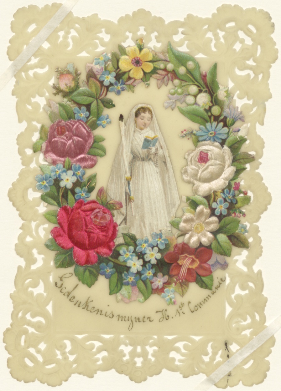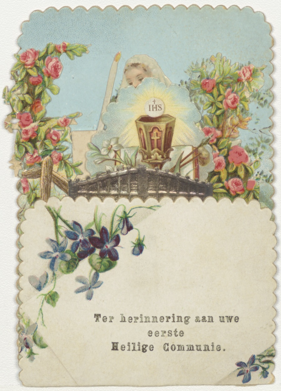 Communieprent, bruidje, kz. Leeuwenhoven(?)