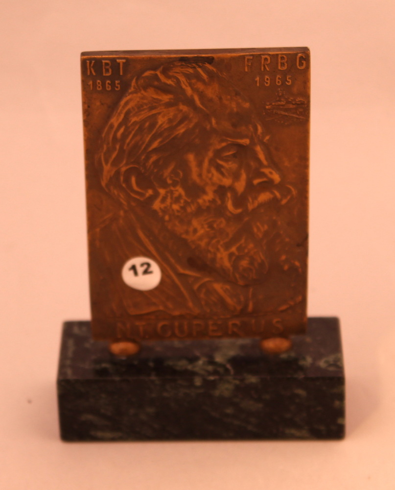 Plaquette met gravure op standaard van Cuperus ter g...