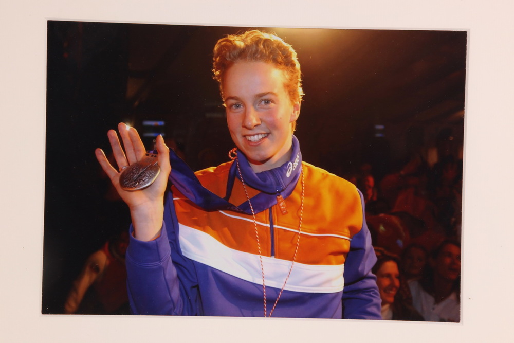 Portret foto van Renate Groenewold met medaille op d...