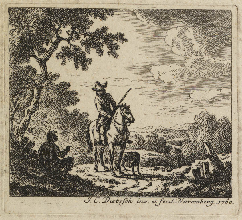 Landschap met ruiter en rustende man