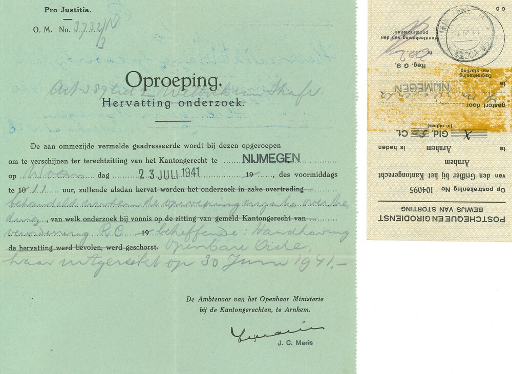 gerechtelijk schrijven, oproeping, dragen van oranje
