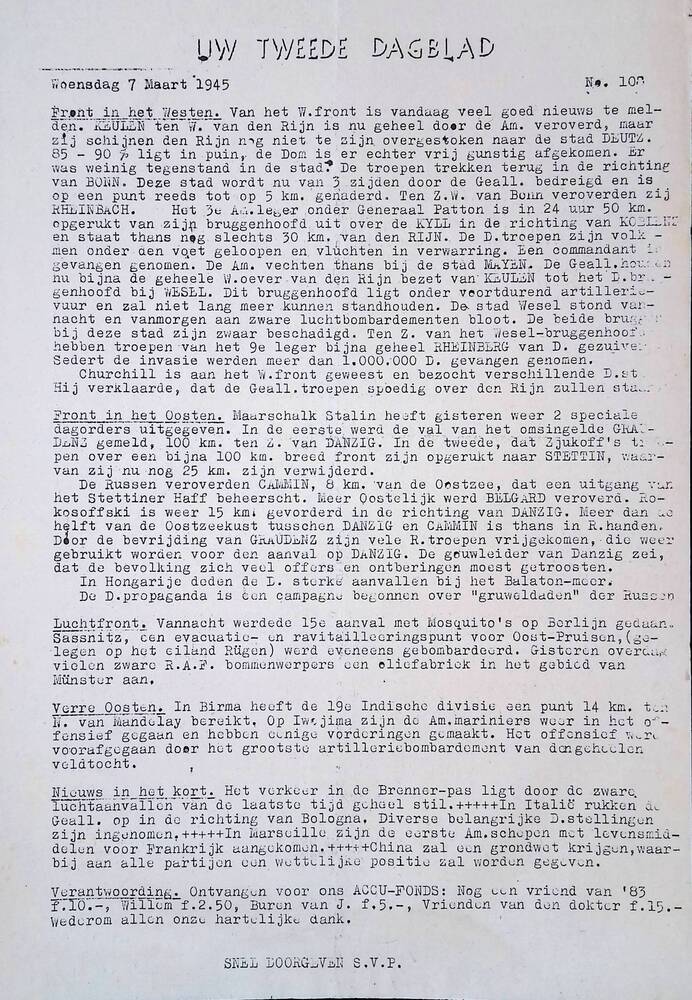 Uw Tweede Dagblad, No.108 Woensdag 7 Maart 1945