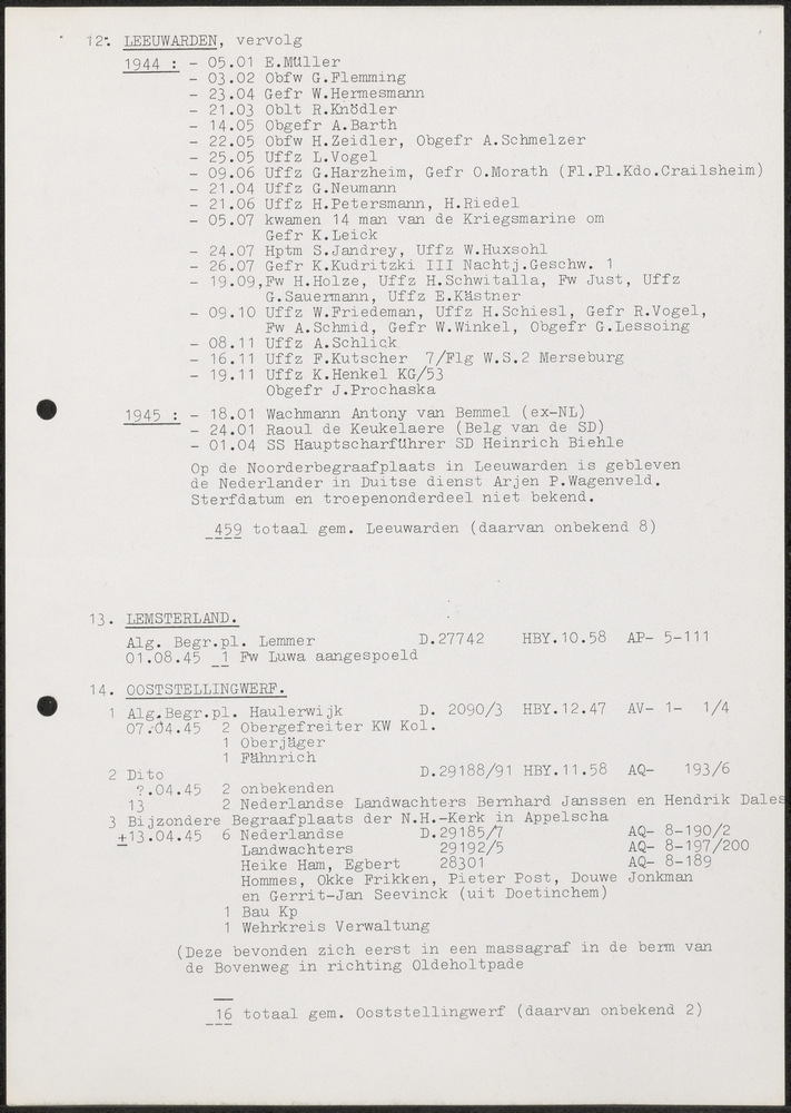 Namenlijst omgekomen militairen in de provincie Frie...