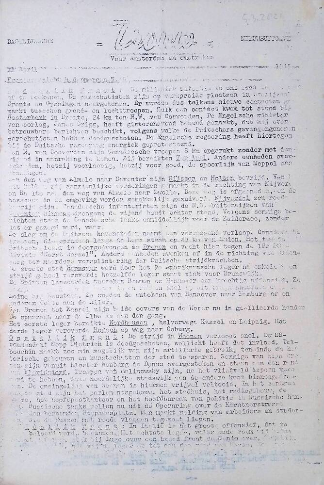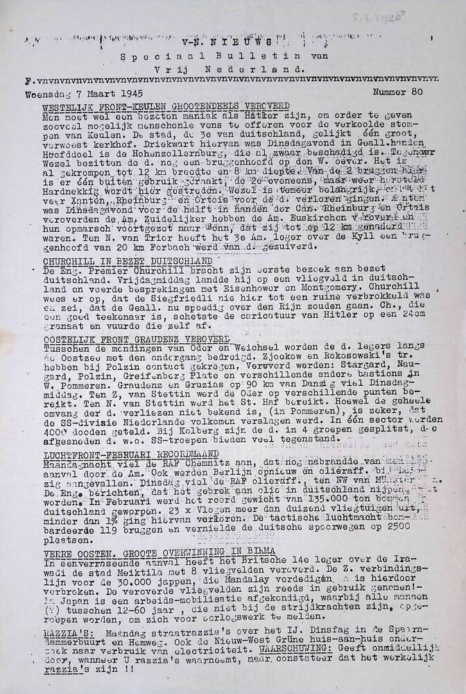 V N Nieuws, Speciaal bulletin, No. 80, 7 Maart 1945