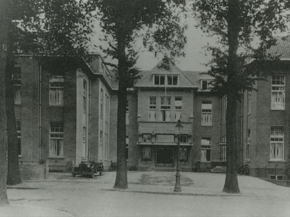 Foto van voorgevel van het oude Wilhelmina Ziekenhuis
