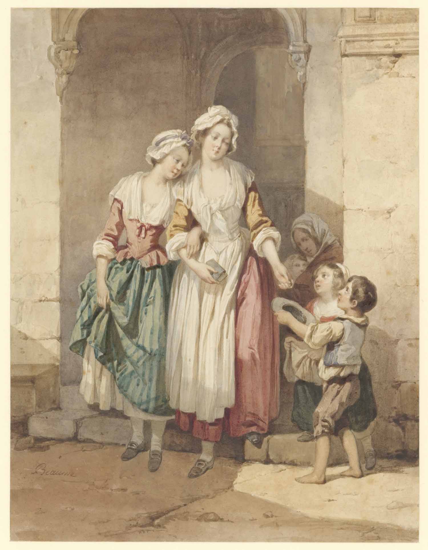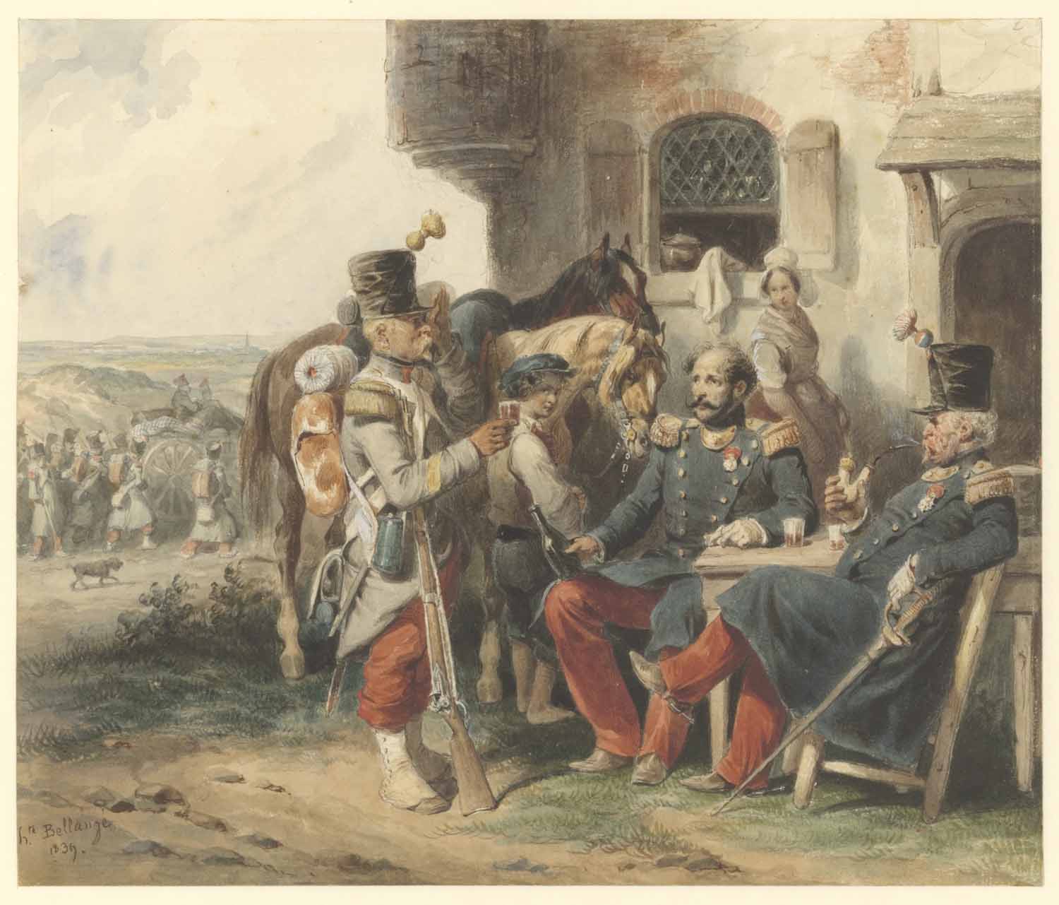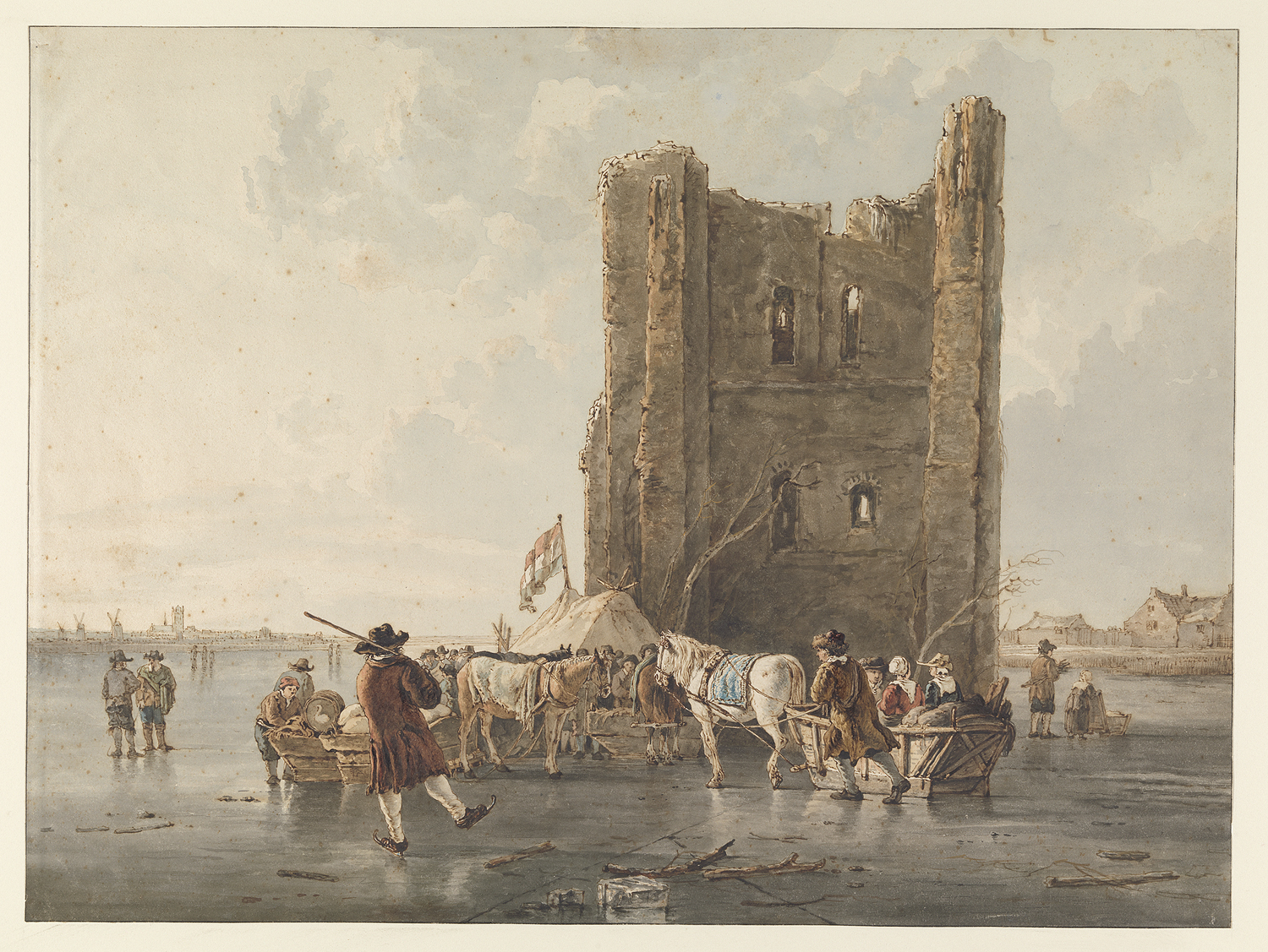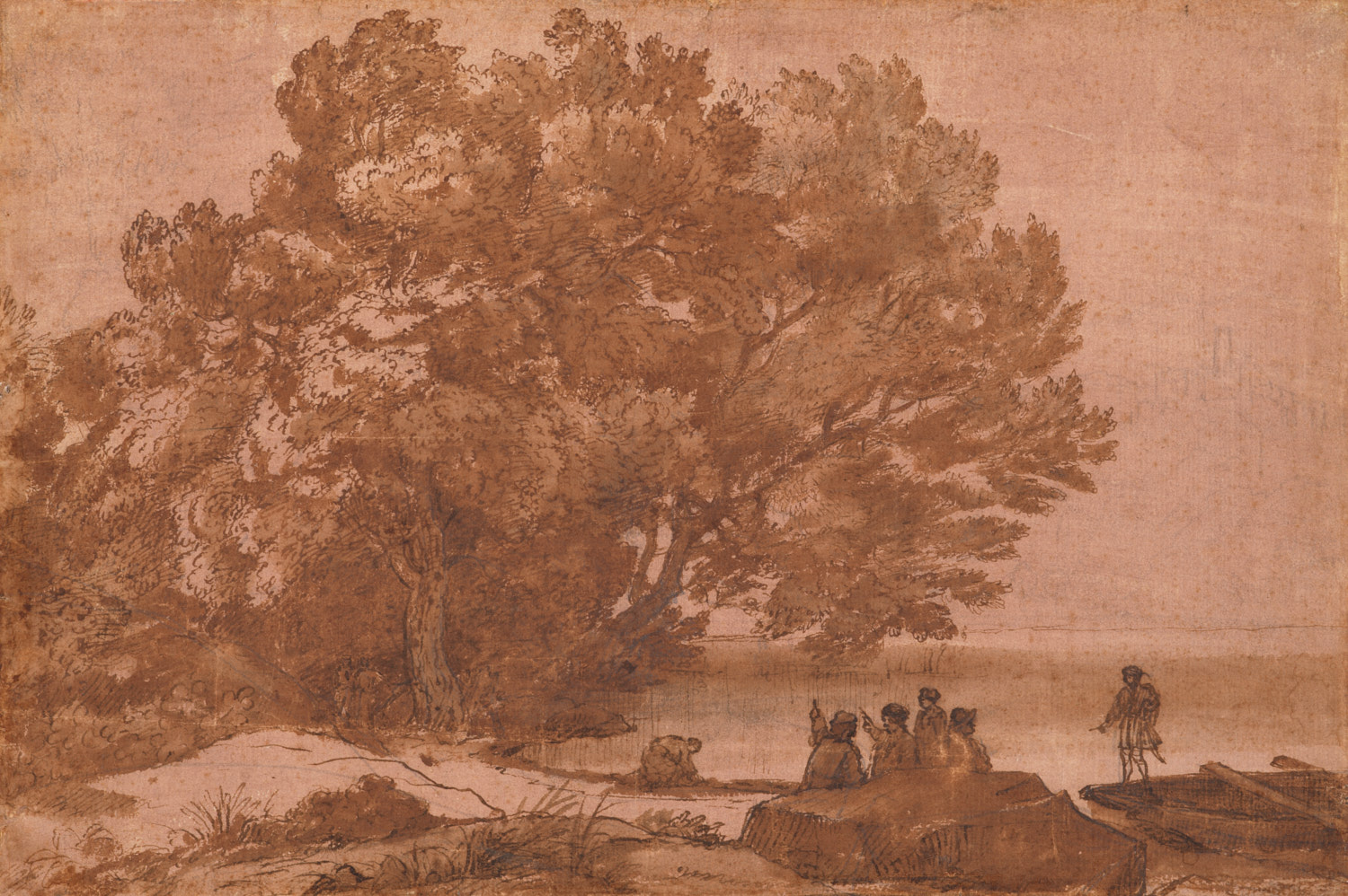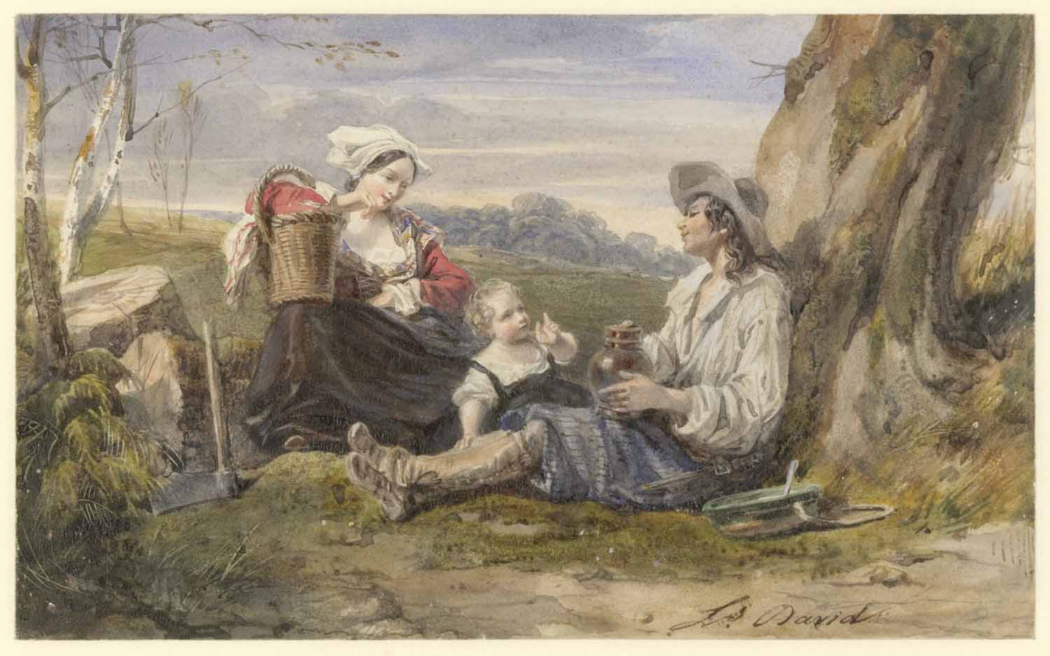 Rustende landlieden bij eenen stadswal. Enkele schet...