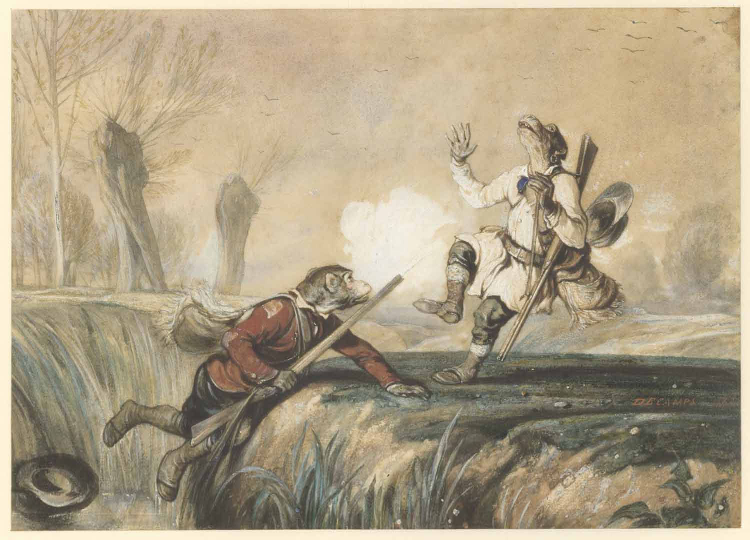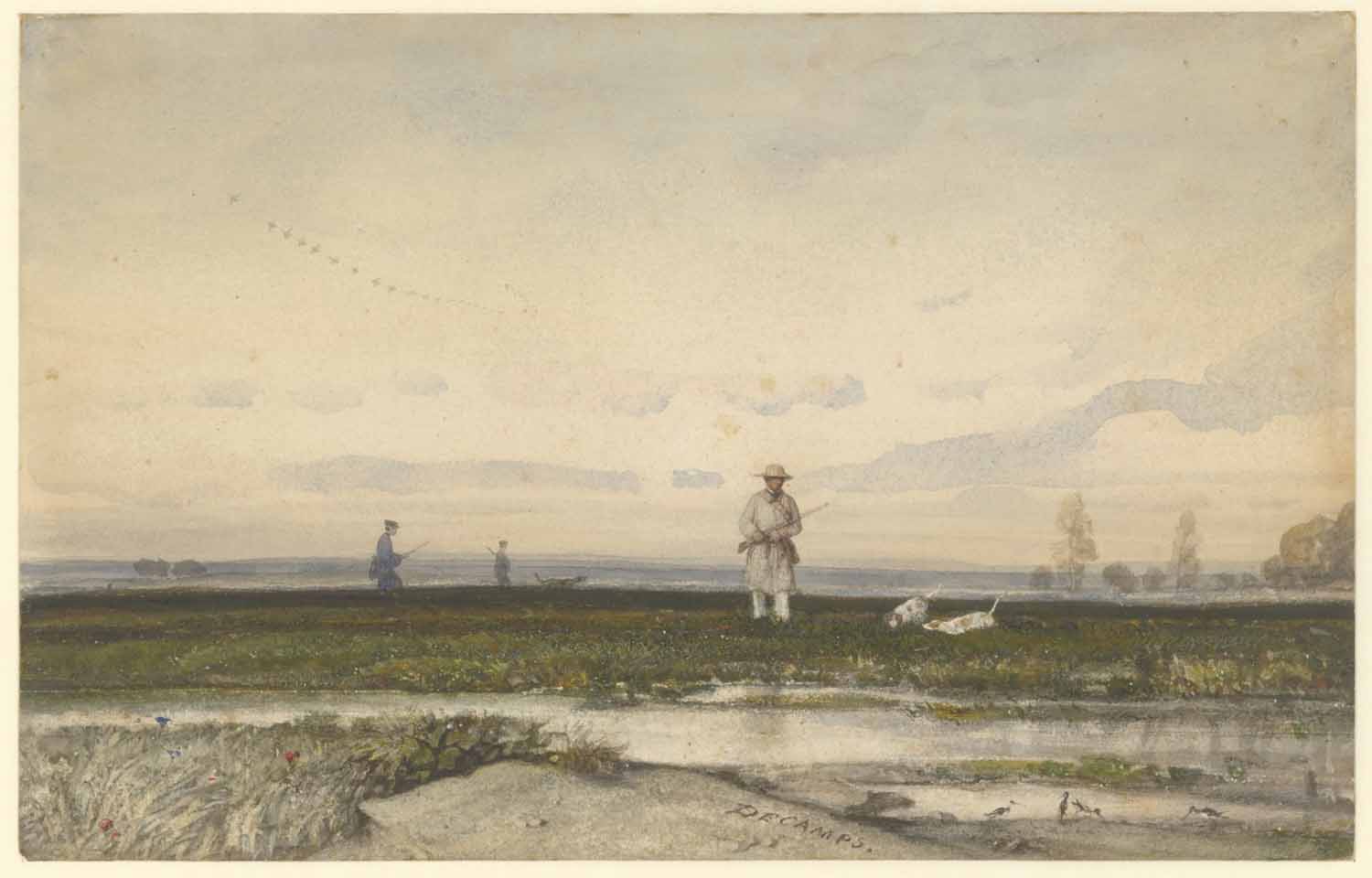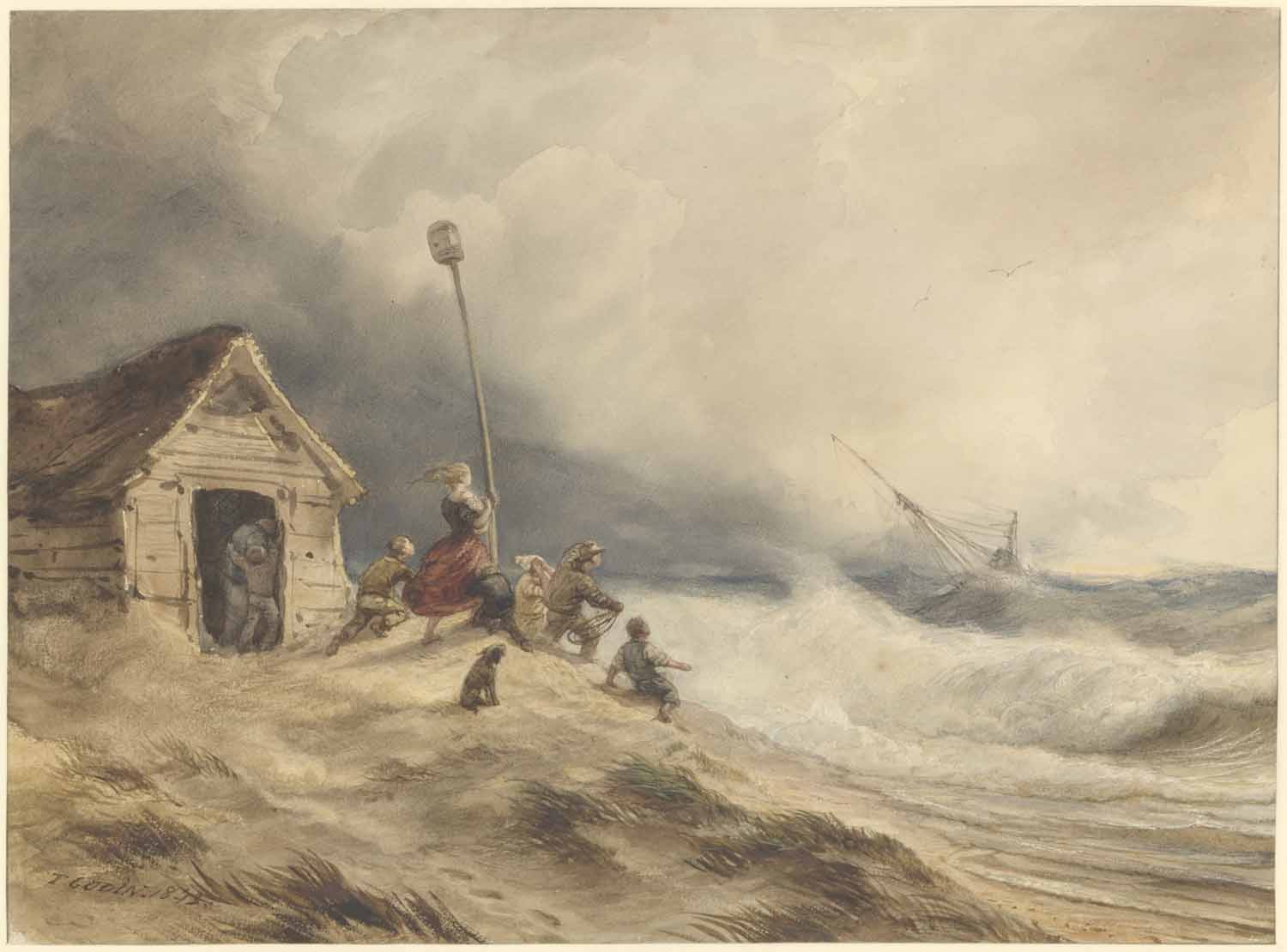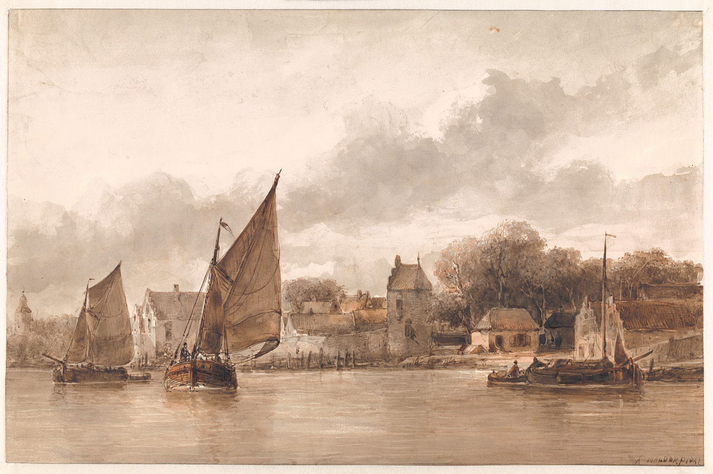 Een stil water; op den voorgrond eene haringbuis
