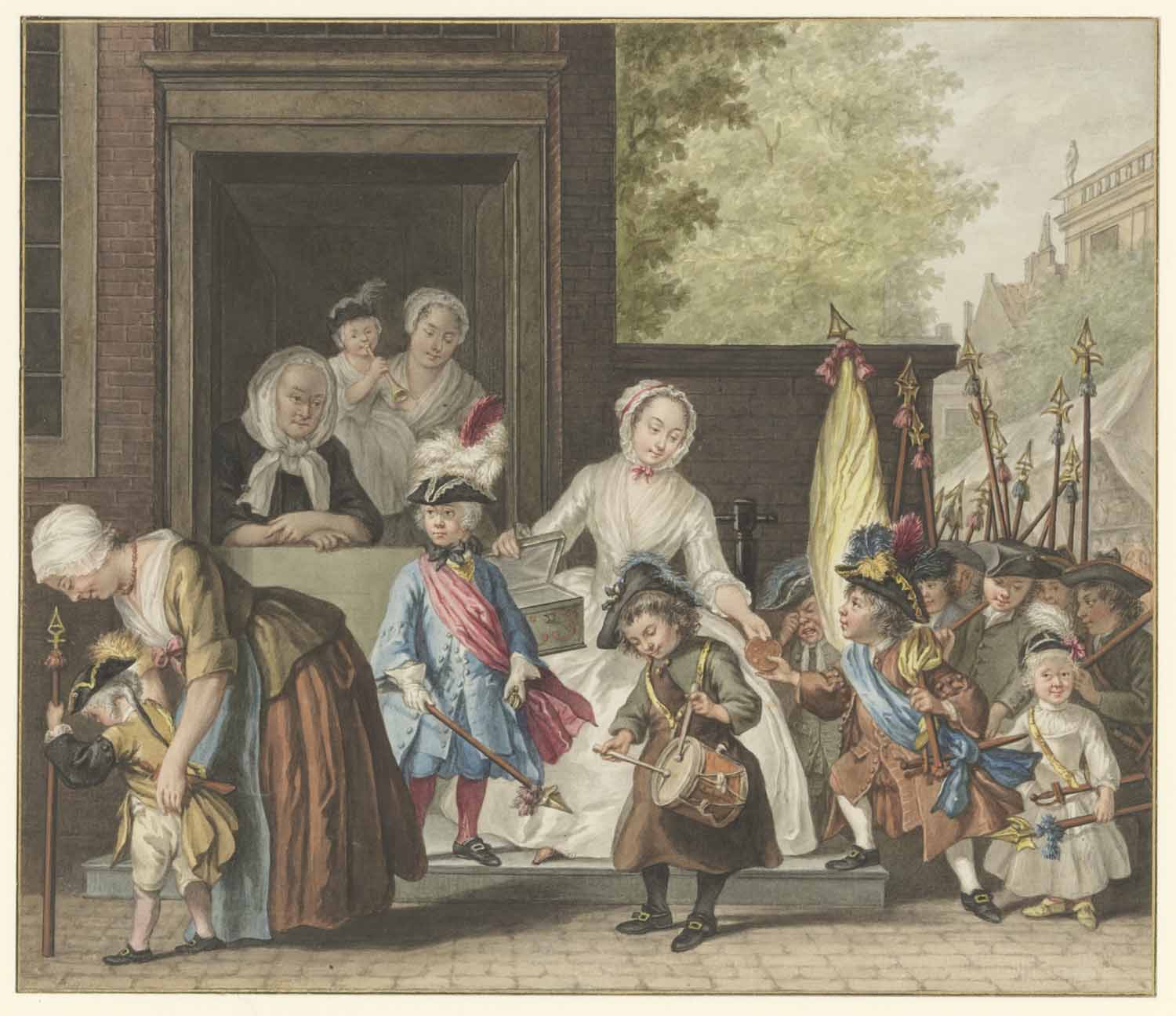 De ingang van een woning, naar een schilderij van Th...