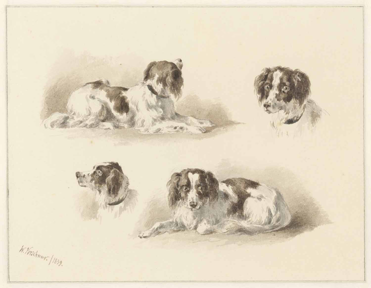 Een studieblad met hondenkoppen