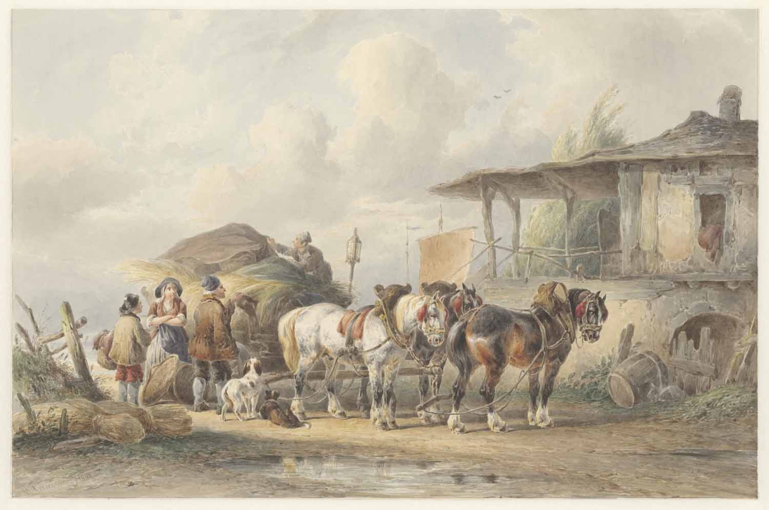 Drie paarden voor eenen vrachtwagen