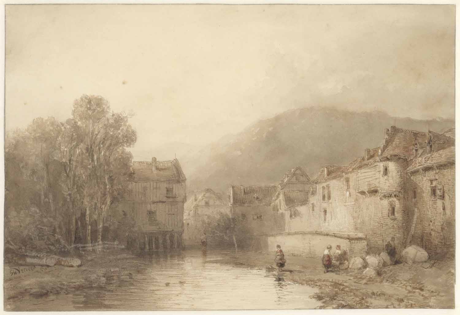 Eenige woningen bij eene sluis