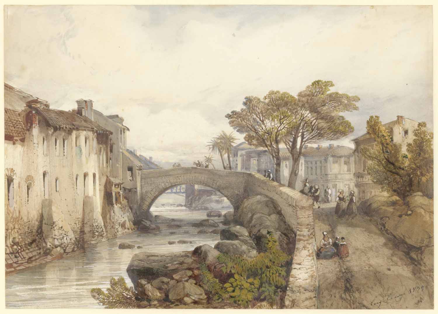Een Italiaans landschap met reizigers