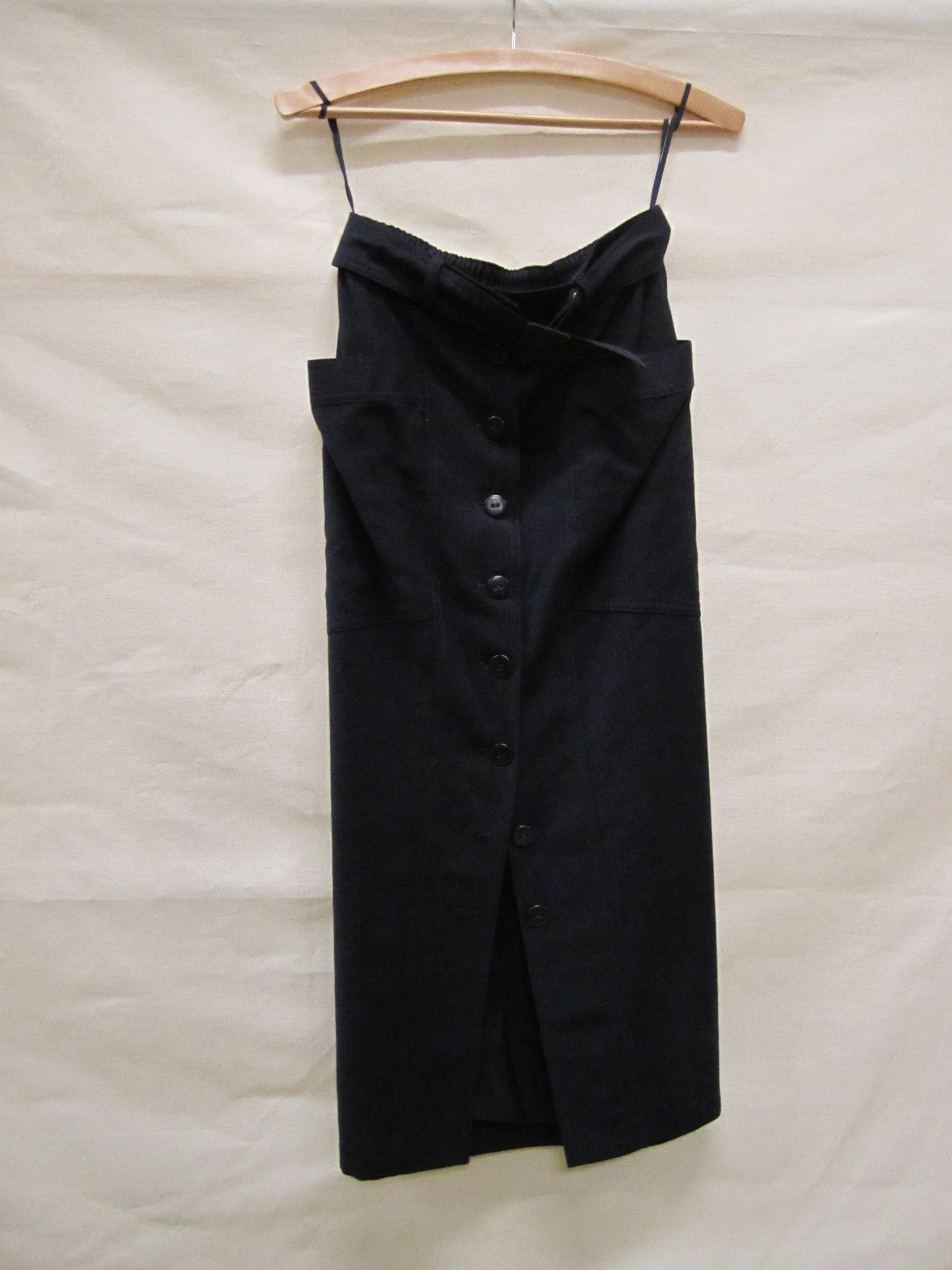 Rok van zwarte scheerwol, halflang, strak doorknoopm...