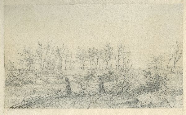Twee figuren in een landschap