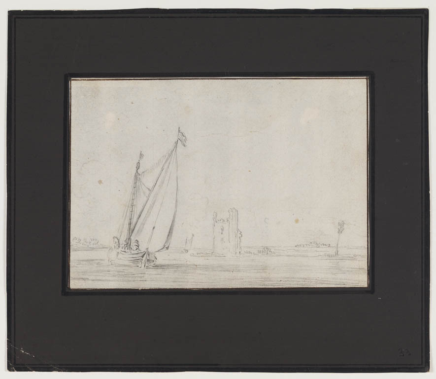 Zeilboot bij een ruïne van het Huis te Merwede