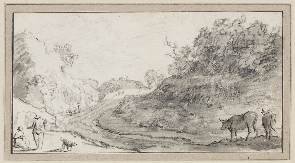 Landweg met herders en vee