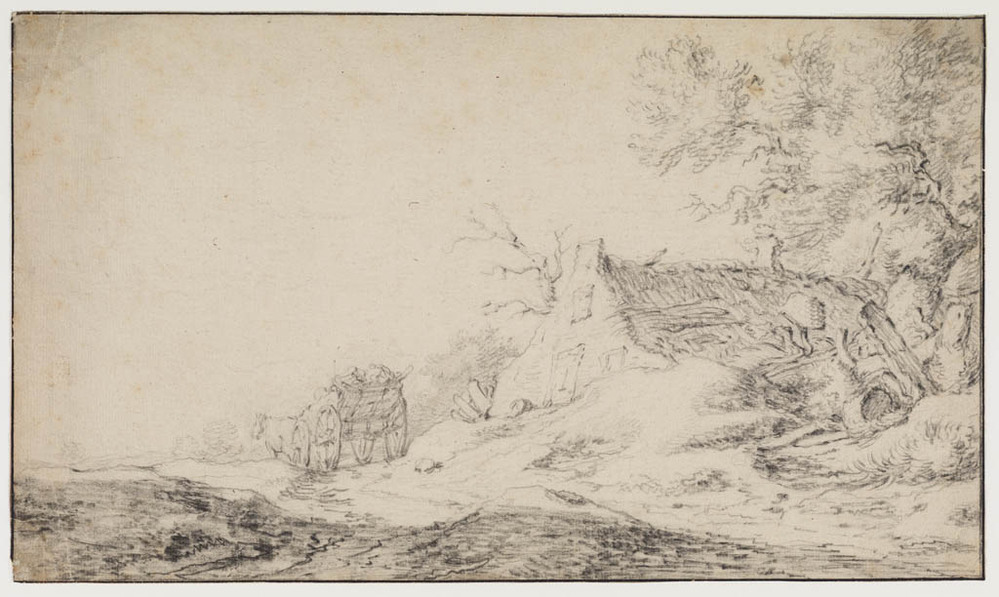 Landschap met kar bij boerderij