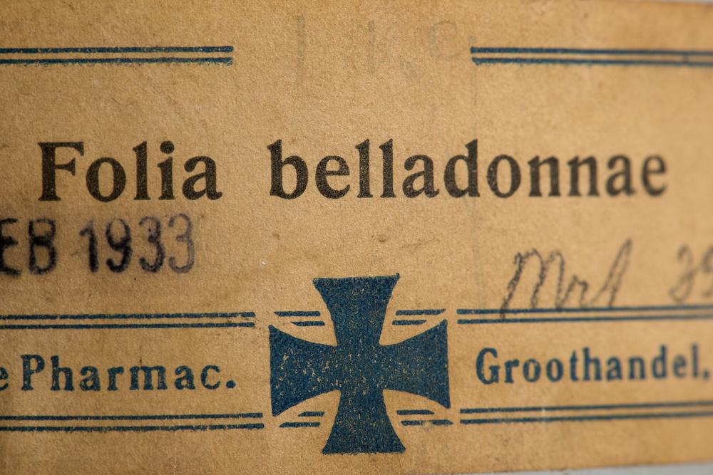 Droogpreparaat van stukken wortel van de wolfskers