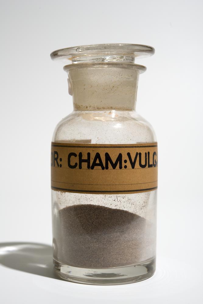 Monster met grijs poeder van kamille