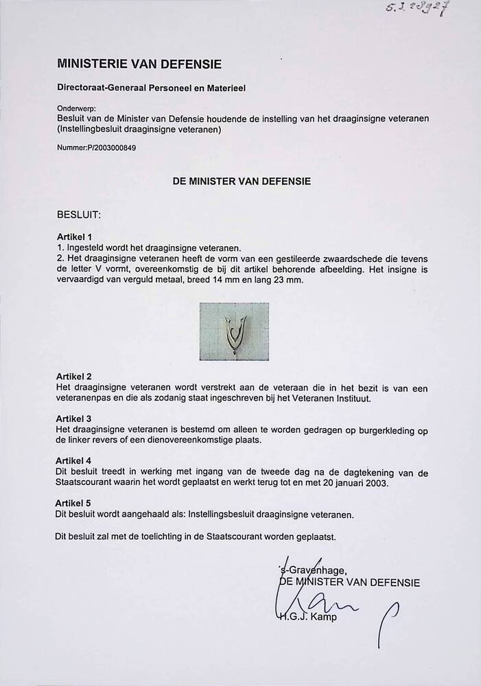 Besluit instelling Draaginsigne Veteranen