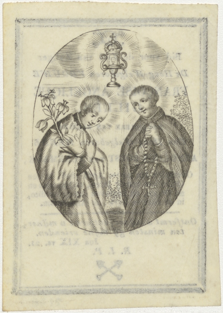 Twee religieuzen aanbidden H. Sacrament in monstrans...