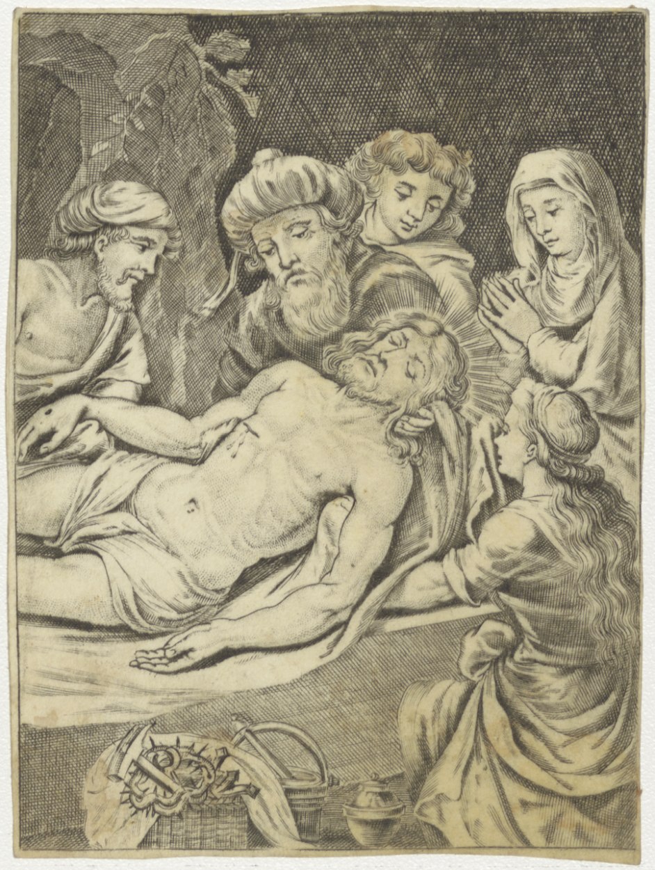 Christus wordt in het graf gelegd, kz. Bid voor ziel...